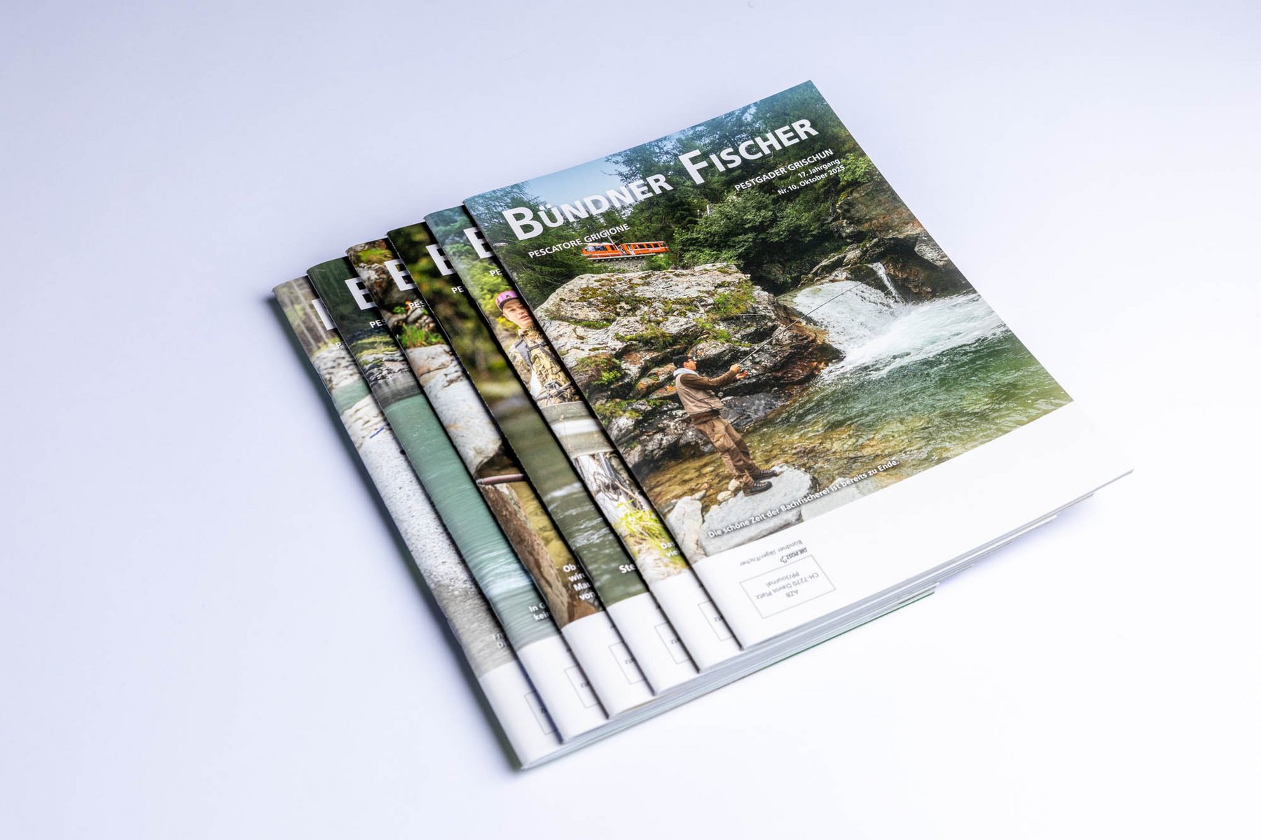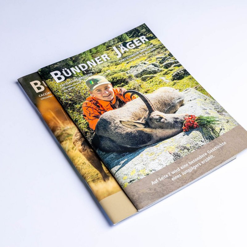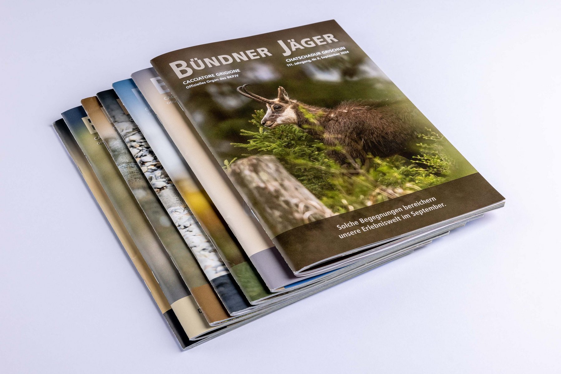 Für das monatlich publizierte Magazin «Bündner Jäger/Bündner Fischer» übernehmen wir sämtliche Aspekte der Produktion – von der Bildbearbeitung und dem Layout bis hin zum Druck und personalisierten Versand.
