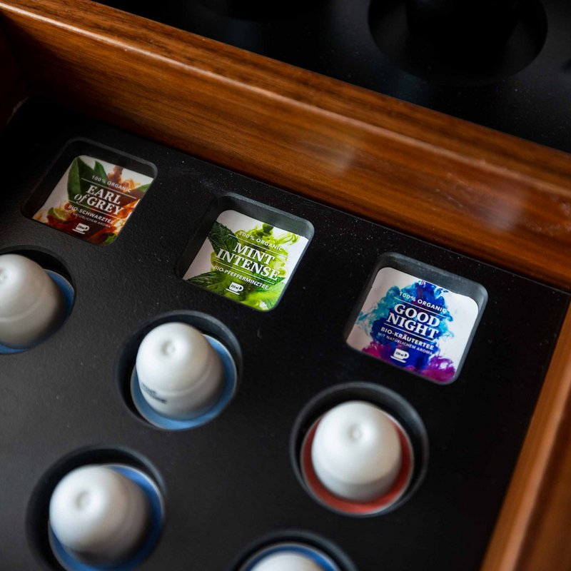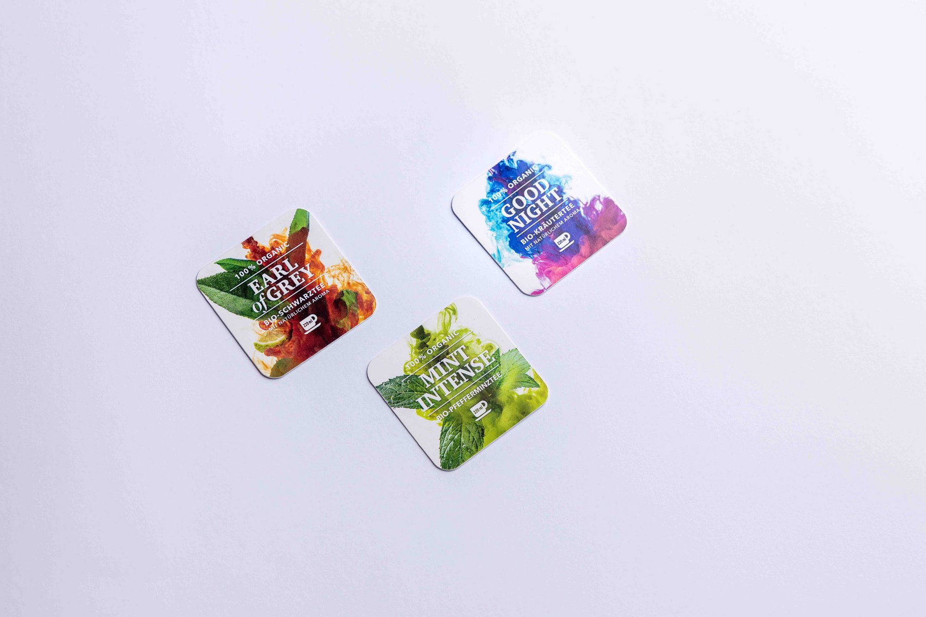 Kleine Helfer mit grosser Wirkung: Damit die Hotelgäste in der Minibar einen besseren Überblick über die verfügbaren Teesorten behalten, haben wir für das Grand Hotel des Bains Kempinski St. Moritz kleine Einlegekarten für die Teekisten in den Hotelzimmern produziert.