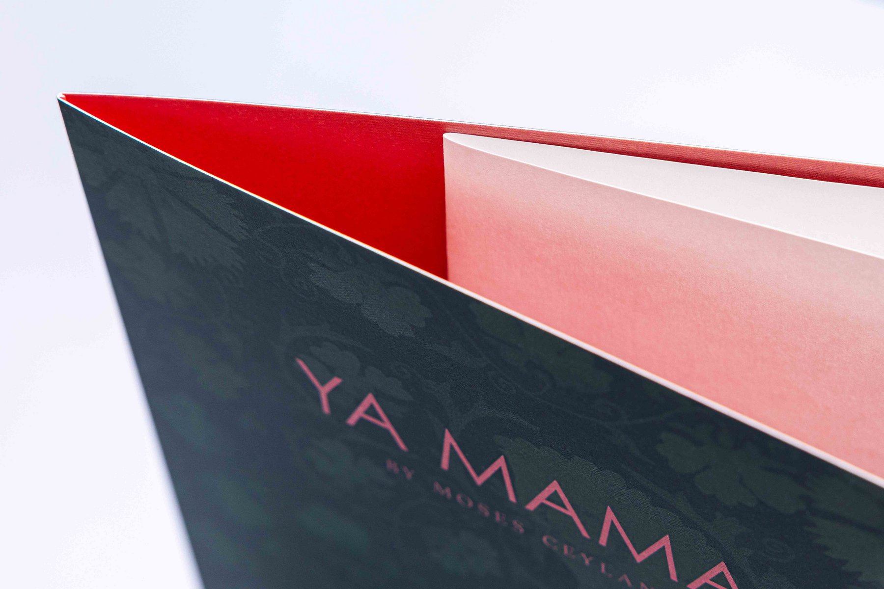 Ein aktuelles Beispiel ist die Menukarte des Restaurants «YA MAMA»: Die Kombination eines filigranen Aufdrucks auf der Aussenseite, ein überraschend knalliges Innenleben sowie ein klassisches Einlageblatt ergibt ein attraktives Gesamtprodukt. Damit die Menukarte lange schön bleibt und sich die Haptik angenehm anfühlt, haben wir sie beidseitig matt laminiert.