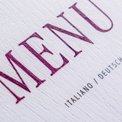 Für zahlreiche Gastronomie- und Hotelkunden realisieren wir Menükarten und Barkarten in verschiedensten Ausführungen. Ob langlebig, edel oder praktisch – gemeinsam mit den Auftraggeber:innen definieren wir die passende Lösung. Je nach Wunsch übernehmen wir die Gestaltung, wählen das geeignete Papier aus und veredeln die Karte, damit das Ergebnis sowohl in Optik als auch in der Handhabung überzeugt.